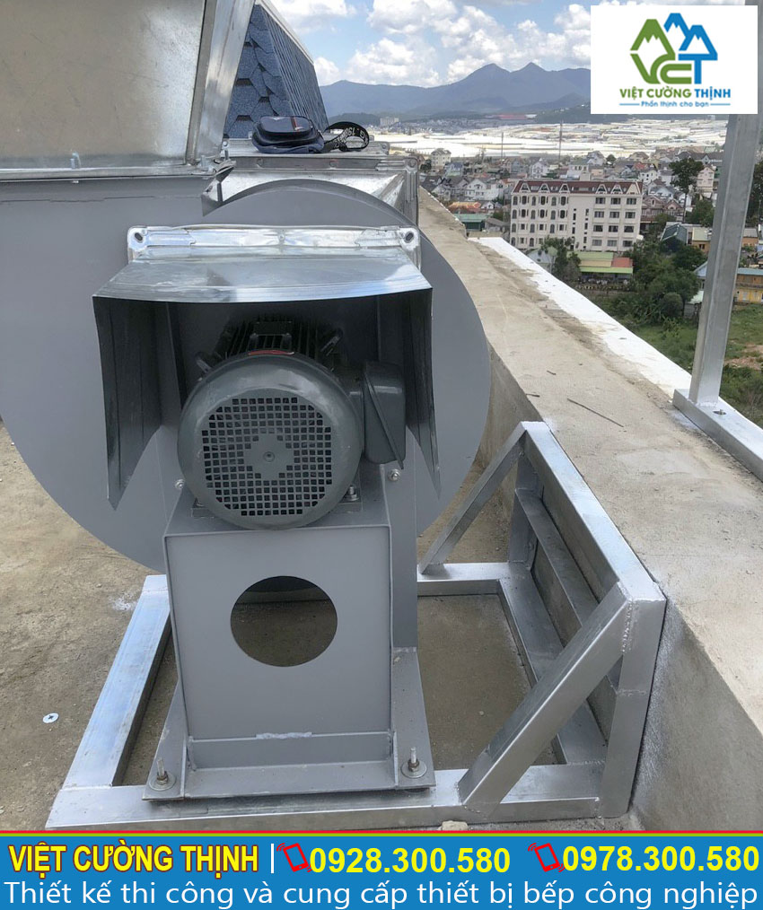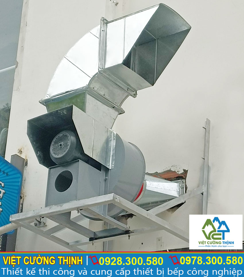 Đây là phần quan trọng nhất trong chụp hút khói bếp công nghiệp vì nó đóng vai trò giúp khói bếp dẫn truyền đến một khoảng cách xa. Quạt được sử dụng trong chụp hút là loại quạt hút khói ly tâm có công suất lớn với cấu tạo mang tính công nghiệp nên có thể đáp ứng được các yêu cầu về công suất hoạt động của toàn bộ hệ thống chụp hút khói bếp.