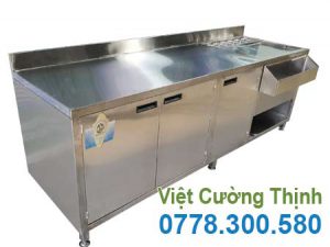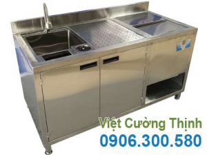 - Kết cấu gồm 02 bồn rửa, thùng đá, kệ trên,…